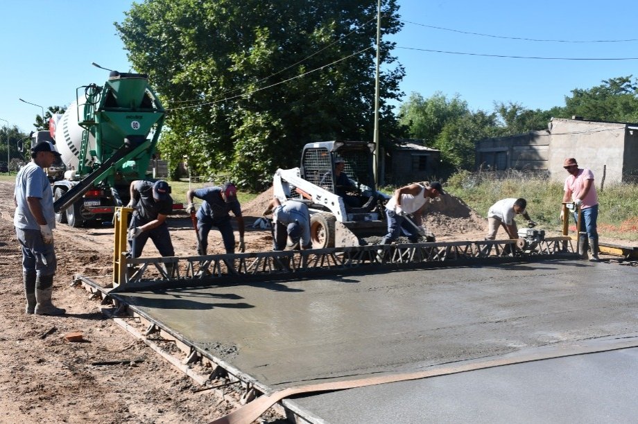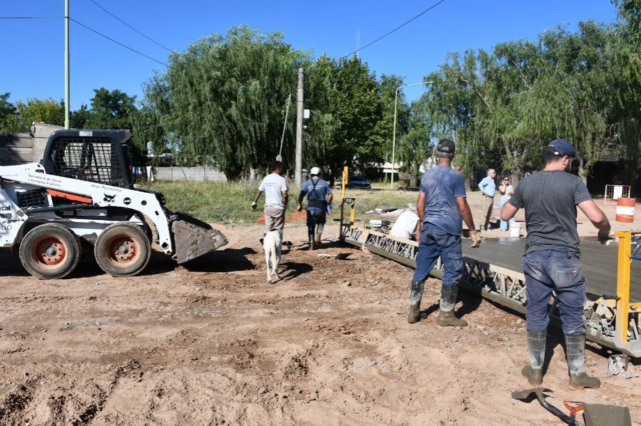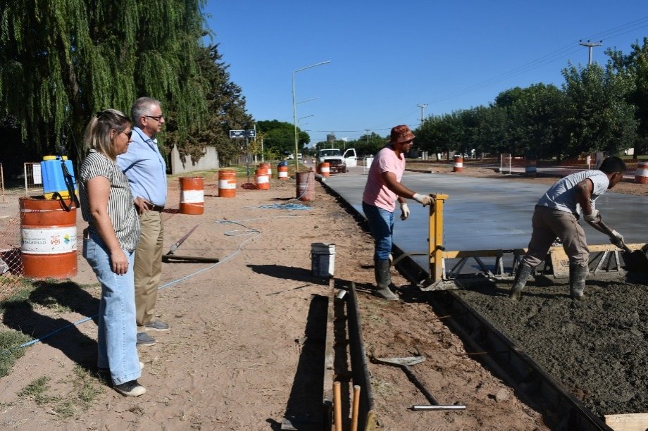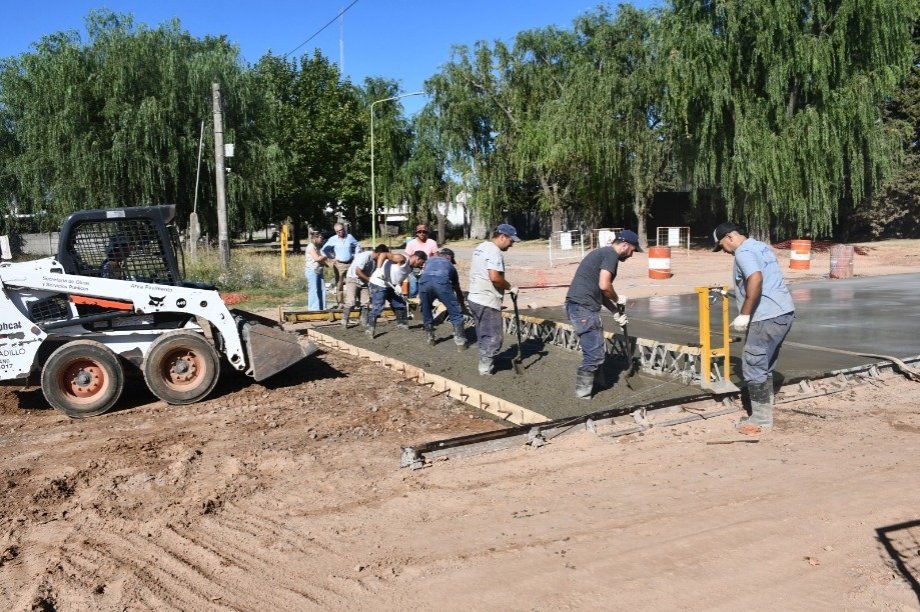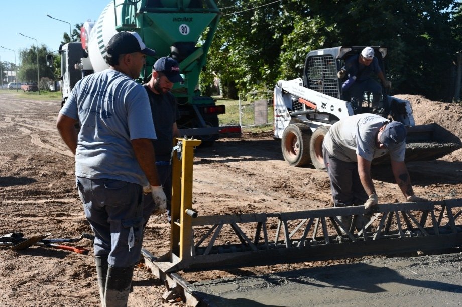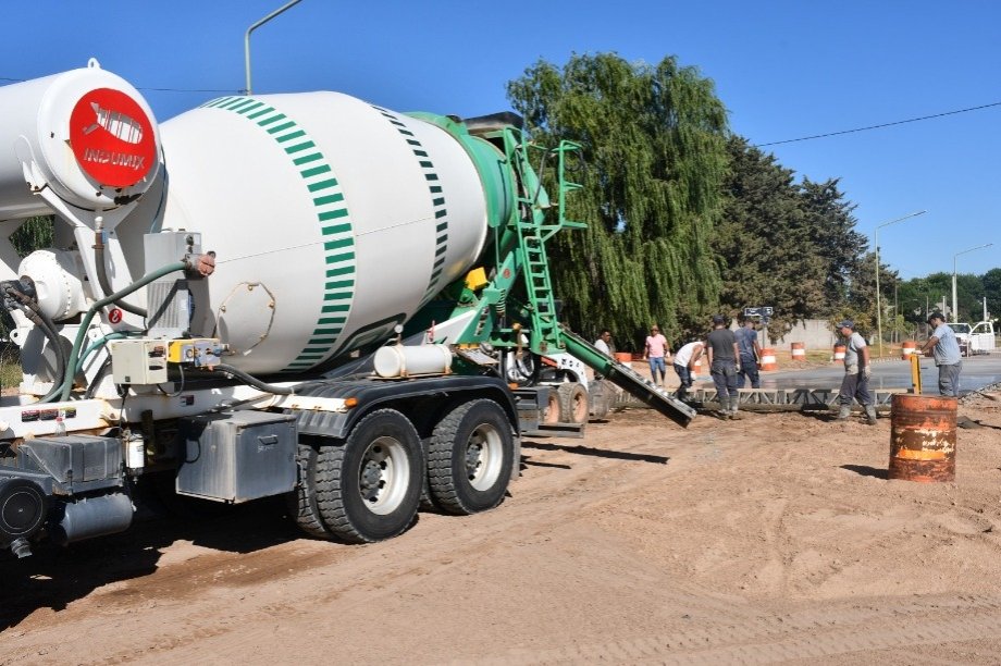 El Intendente Interino Dr. Alejandro Armendáriz junto con la Arquitecta Anabella Fasano, observó los trabajos de hormigonado en la intersección de las Avenidas Frocham y Bozan de nuestra ciudad.
