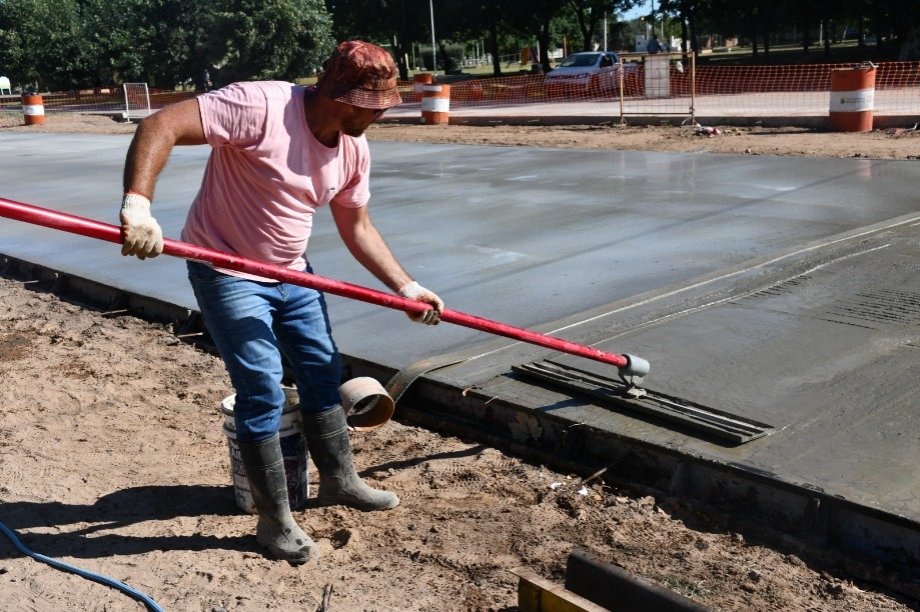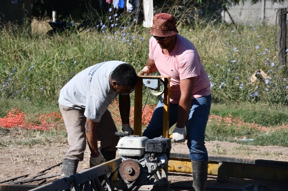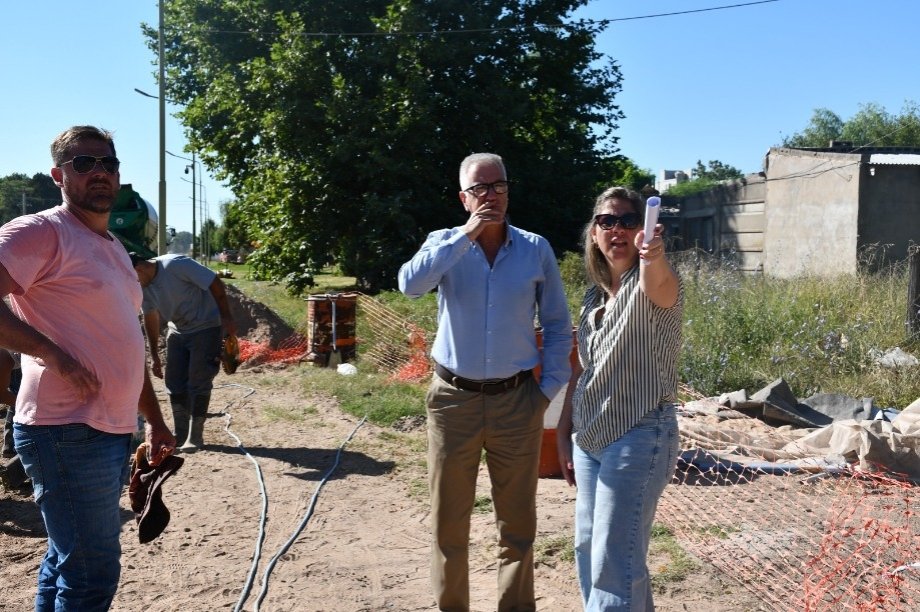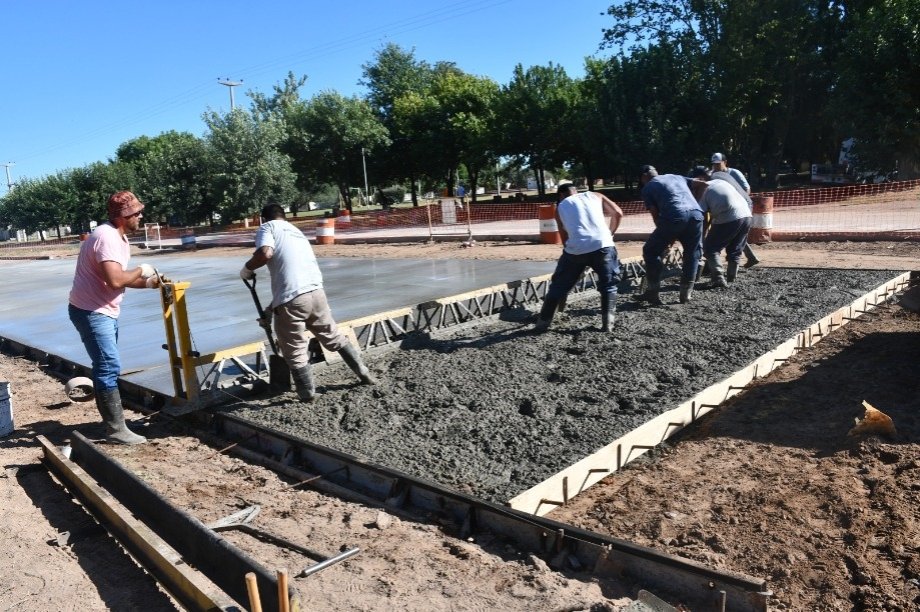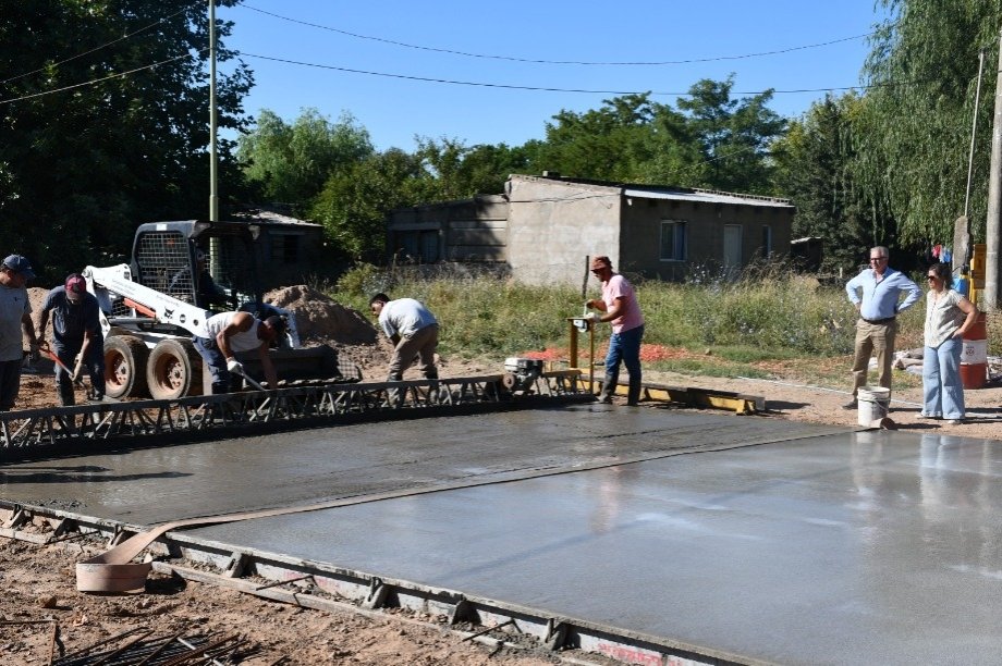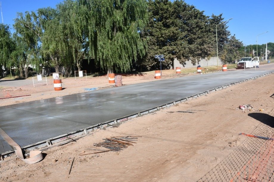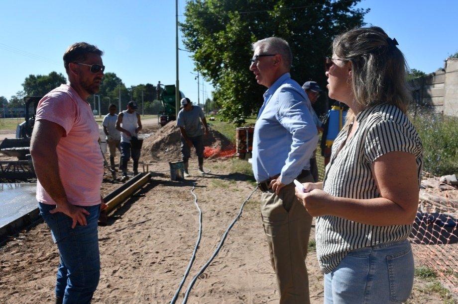 El Intendente Interino Dr. Alejandro Armendáriz junto con la Arquitecta Anabella Fasano, observó los trabajos de hormigonado en la intersección de las Avenidas Frocham y Bozan de nuestra ciudad.