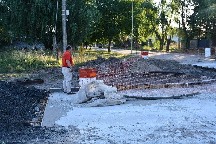 El Intendente Municipal Ing. José Luis Salomón observó el avance registrado en la obra de construcción de pavimento urbano en la Avenida Frocham en la intersección con la Avenida Bozán que ya está próxima a ser finalizada restando solamente algunos detalles de terminación.