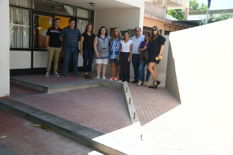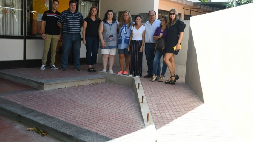 El Intendente Salomón junto con la Directora de Proyectos Arquitecta Albertina Di Iulio, la Presidenta del Consejo Escolar Ana Olivera y consejeros recorrieron la obra de construcción de una rampa de acceso en el ingreso del edificio del Jardín de Infantes 905 de nuestra ciudad.