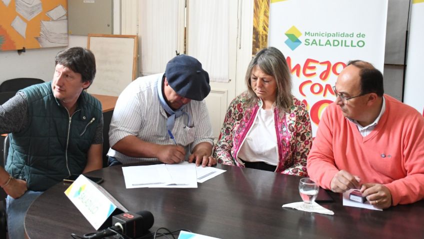 En el Salón Sesquicentenario, se llevó a cabo la firma del convenio de cooperación entre el Municipio local y el Centro Educativo para la Producción Total del Paraje La Barrancosa.