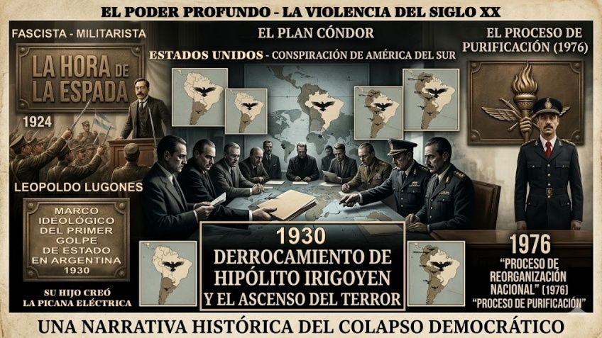 El punto de partida es ver al Poder Profundo y la siembra de la espada en un recorrido hacia el terrorismo de Estado en lo que es la Argentina de 1930 a 1976.