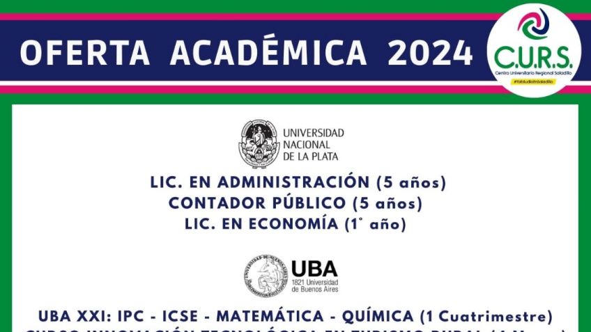 El Centro Universitario Regional de Saladillo presenta la Oferta Académica para el 2024??