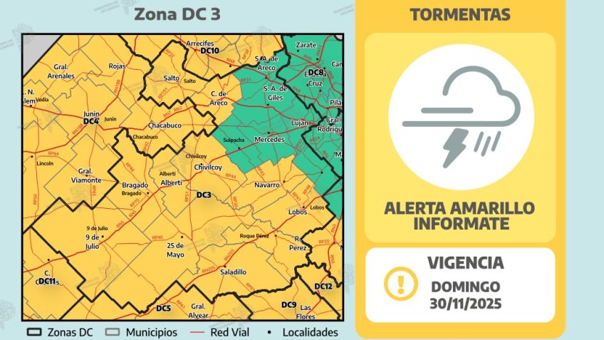 Descripción alerta amarillo por tormentas PBA - Domingo 30