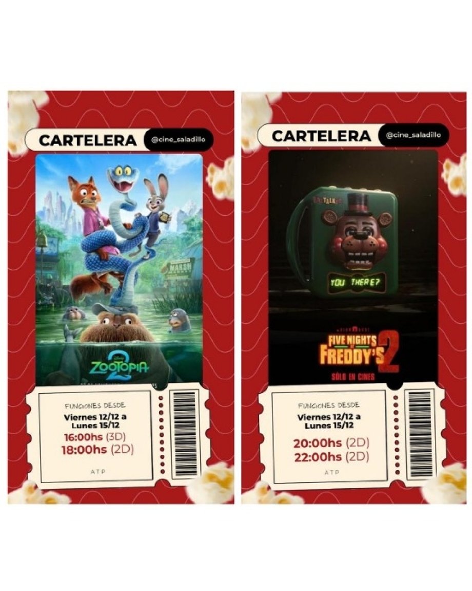 Viernes 12 a lunes 15 16h 3D 18h 2D