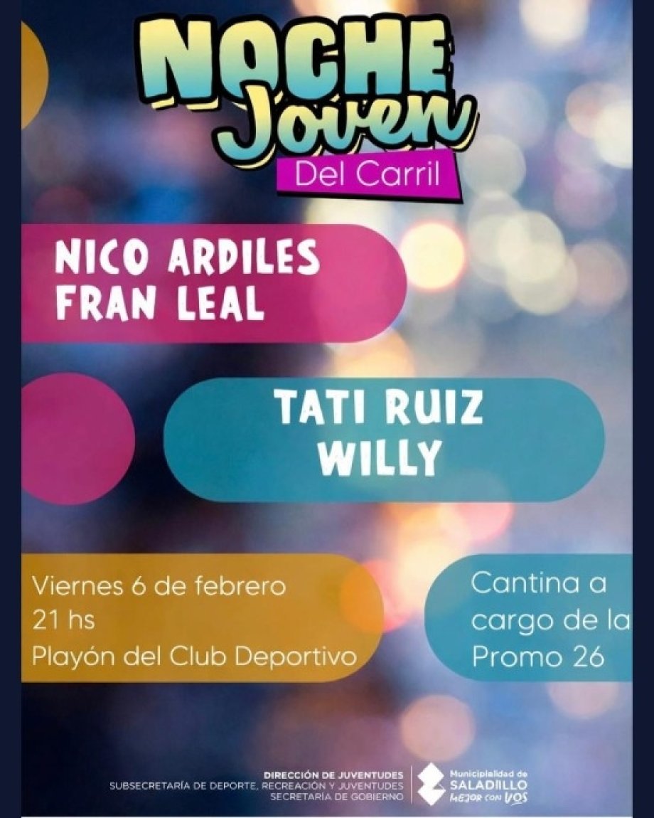 * NOCHE JOVEN EN DEL CARRIL -Shows en vivo, juegos, presentación Promo 26