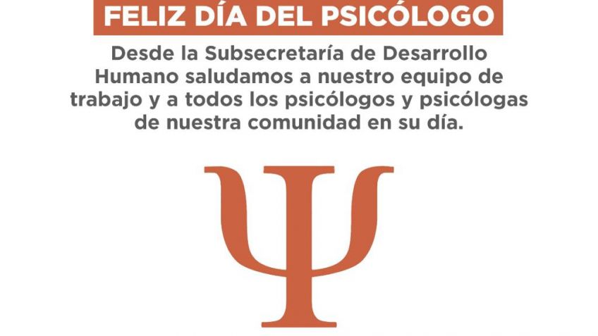 Desde la Subsecretaría de Desarrollo Humano queremos hacer llegar nuestro saludo en el el día del Psicólogo.