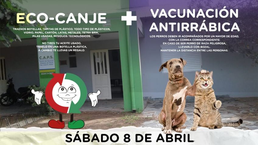 Eco-canje: Traenos botellas, tapitas de plástico, todo tipo de plásticos, vidrio, papel, cartón, latas, metales, tetra brik, pilas usadas, residuos tecnológicos.