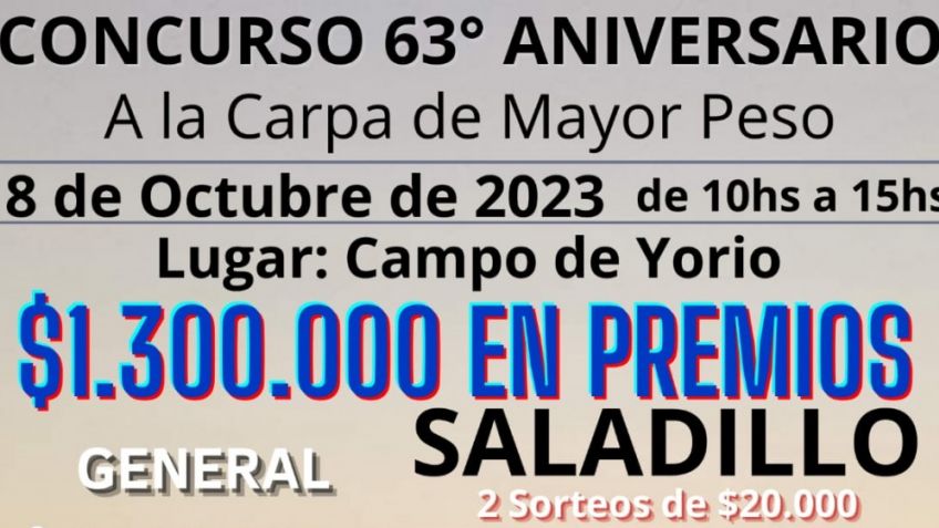 El total de premios será de 1.300.000 pesos incluyendo sorteos.