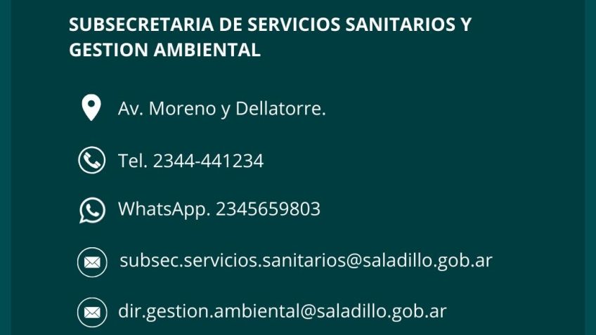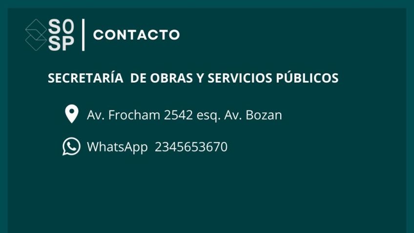 Por consultas comunicarse con la Secretaría de Obras y Servicios Públicos ubicada en Av. Frocham 2542 esq. Av. Bozán al whatsapp 2345-653670