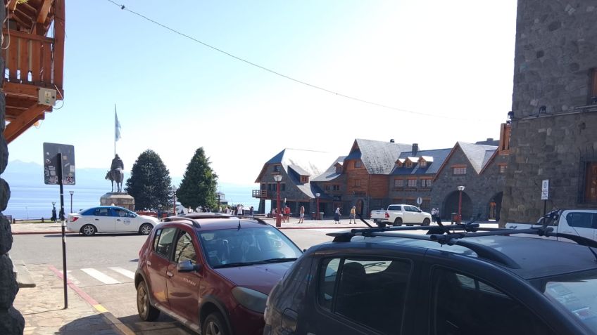 En el Centro Cívico, uno de los puntos más emblemáticos y turísticos, el lago Nahuel Huapi continúa siendo visible, aunque el horizonte se presenta frecuentemente cubierto por una capa gris producto del humo en suspensión proveniente de los focos ígneos regionales.
