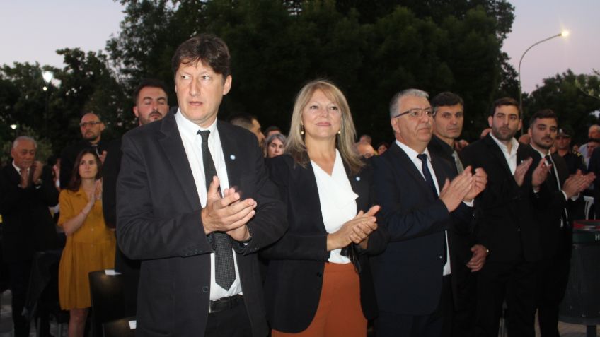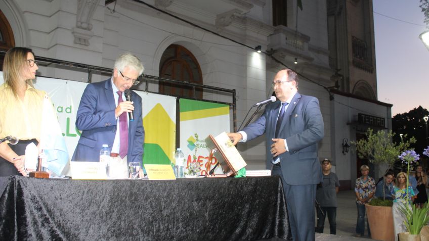 Tras prestar juramento ante el presidente del Concejo Deliberante, Alejandro Armendáriz, el mandatario brindó su mensaje y entregó un presente a los ex mandatarios Francisco Ferro y Carlos Gorosito, con motivo de celebrarse los 40 años de la recuperación de la democracia.