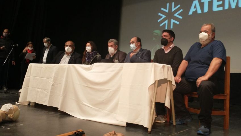Estuvieron presentes el secretario general del SSP, Miguel Ángel Zubieta, acompañado por el Secretario de capacitación, licenciado Julio Reynoso y el intendente José Luis Salomón y funcionarios municipales. También los directores del Hospital Posadas doctores Javier Piñeyro y Félix Crognale y el delegado del Sindicato en nuestra ciudad, Pablo Moscatello.