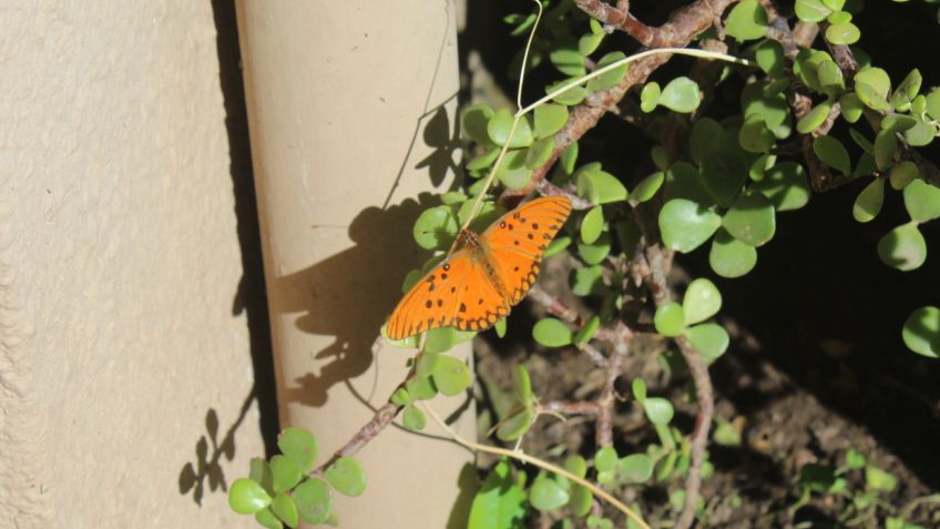 Cuando miré hacia el parque del fondo de casa pude observar, con sorpresa, la visita de una mariposa. Una que tenía sus alas color naranja con motas negras.