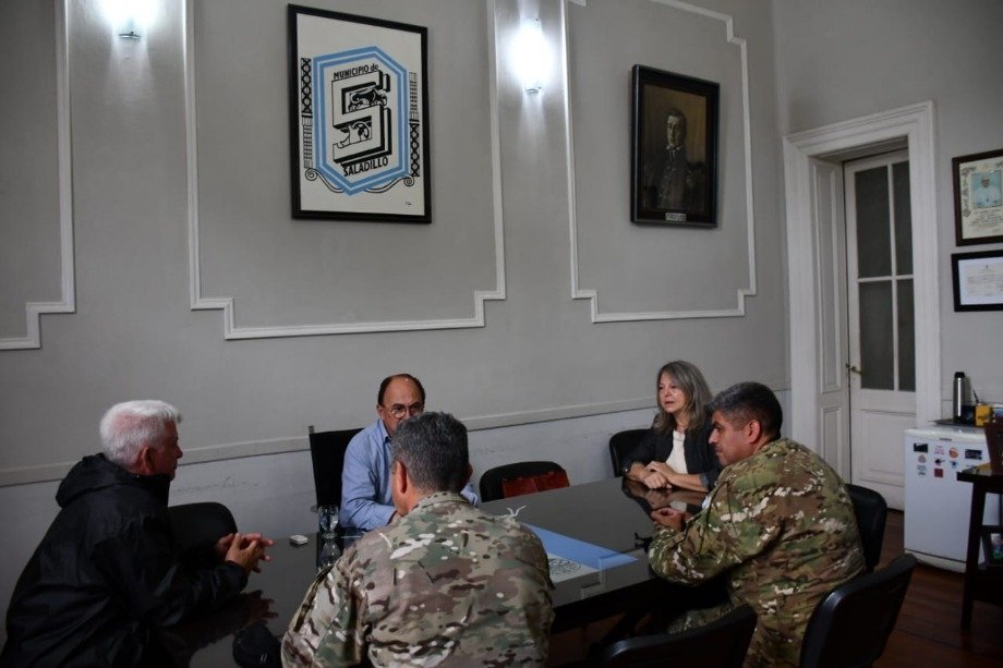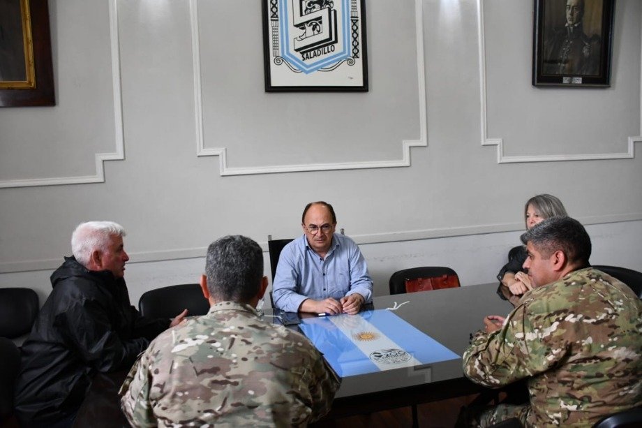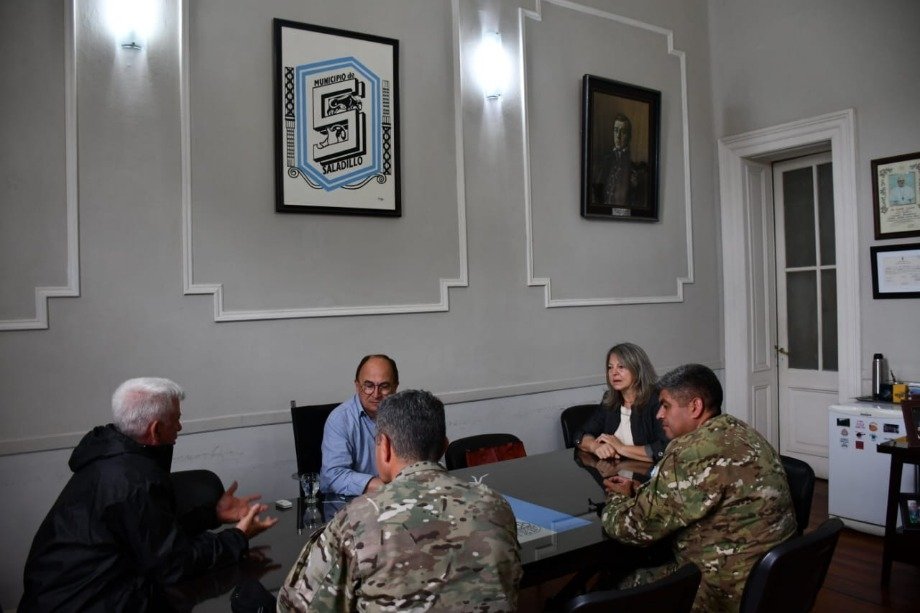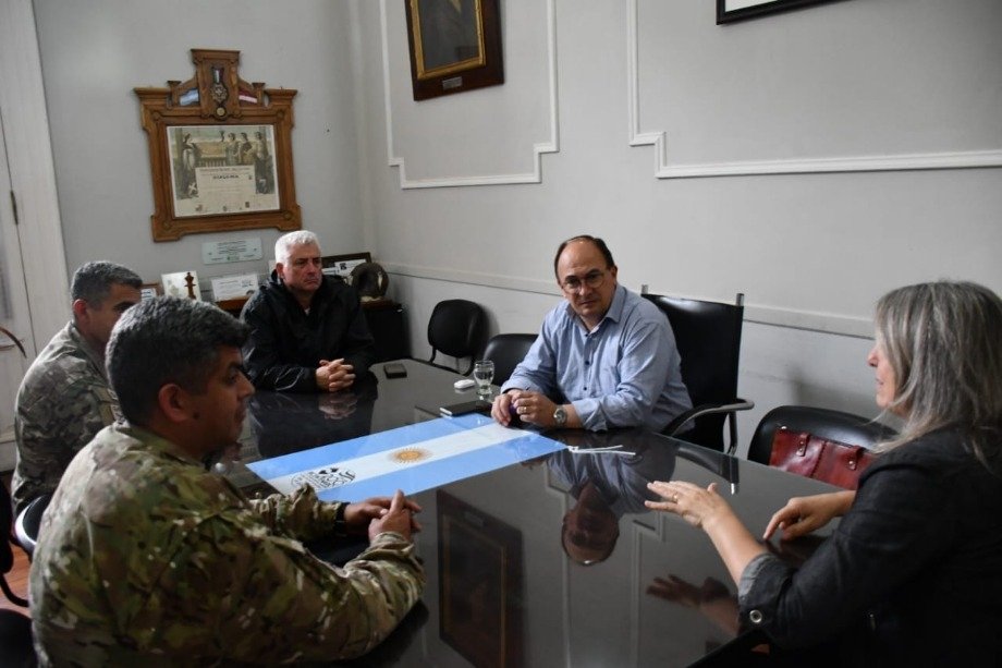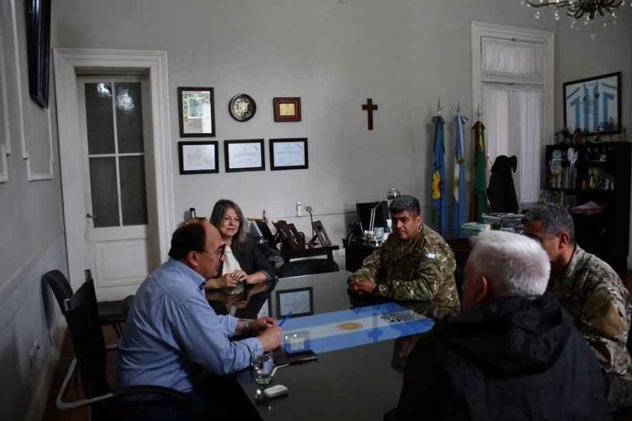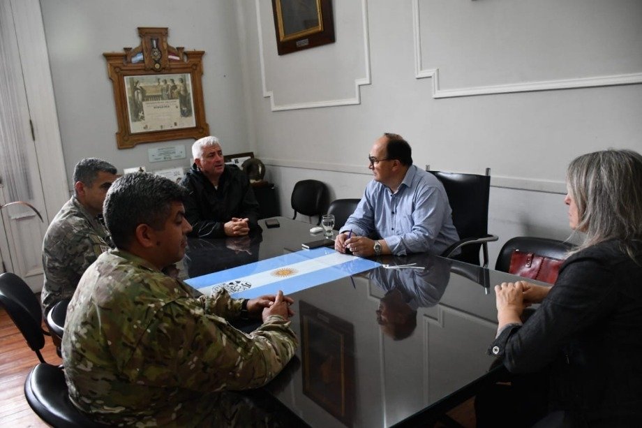 El Intendente Municipal José Luis Salomón junto a la Secretaria de Gobierno, Viviana Rodriguez y de Seguridad Fernando Arrospide, recibieron a los responsables del Ejército Argentino que tuvieron a su cargo la guarda y custodia del material electoral en nuestra ciudad, así como la seguridad logística del proceso electivo.