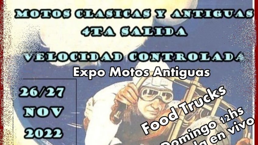 Desde las 10 hasta las 15, en la Base de Campamento de Cazón se realizará este 26 y 27 de noviembre el Cuarto Rally oficial y Expo Motos Antiguas, con entrada libre y gratuita, organizado por el club de Motos Clásicas y Antiguas de Saladillo, entidad de Bien Público, sin fines de lucro. Para este importante evento, los organizadores informaron sobre el programa previsto para este fin de semana en la localidad de los Viveros. "Este fin de semana llevaremos adelante nuestro Cuarto evento oficial en la Base de Campamento de Cazón. Sin bien a lo largo del año hacemos varias actividades, éste lo tomamos como nuestro evento principal. El día principal es el domingo, pero desde el sábado ya comenzaremos a recibir participantes. Es importante destacar que el predio contará ambos días con Food Trucks, Bandas en Vivo, artesanos y motos en exposición, por lo tanto aquellos que se quieran acercar, más allá que les gusten o no las motos, lo podrán hacer sin ningún inconveniente, ya que el evento es muy familiar".