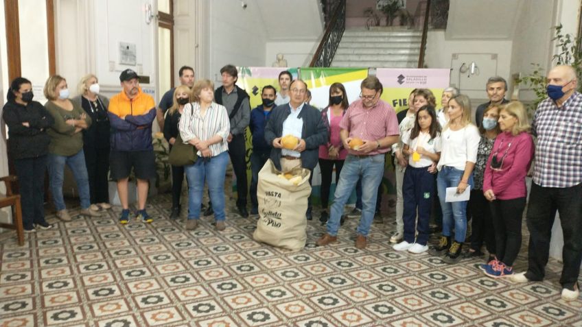 En el hall del Municipio miembros de las Comisiones de distintas instituciones recibieron bolsas con la mitad de las galletas de piso que necesitarán durante el desarrollo de la Fiesta. Mañana les será entregada la otra mitad. A esta hora se cocinan diversos elementos de relleno. Guisos, carnes y verduras y, además, fiambres. Participaron el intendente José Luis Salomón, la directora de Bromatología, Soledad Galíndez y el subsecretario de Turismo Daniel Carnevali, junto a otros funcionarios y miembros de las Instituciones participantes.