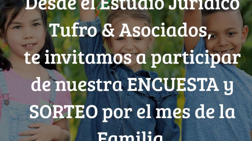 Las abogadas de familia del Estudio Tufro & Asociados - Dra. M. Alexandra Díaz y Dra. Patricia G. Bagnato - te invitan a participar de una encuesta gratuita sobre la realidad de las familias en nuestra comunidad.