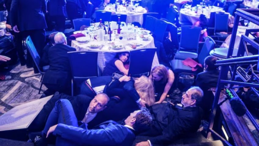 Enseguida, todos los ocupantes de la mesa presidencial fueron evacuados a lugar seguro y después más miembros del Servicio Secreto se desplegaron en la sala de baile portando rifles de asalto y pidieron a todas las personas en la sala que se pusieran a cubierto.