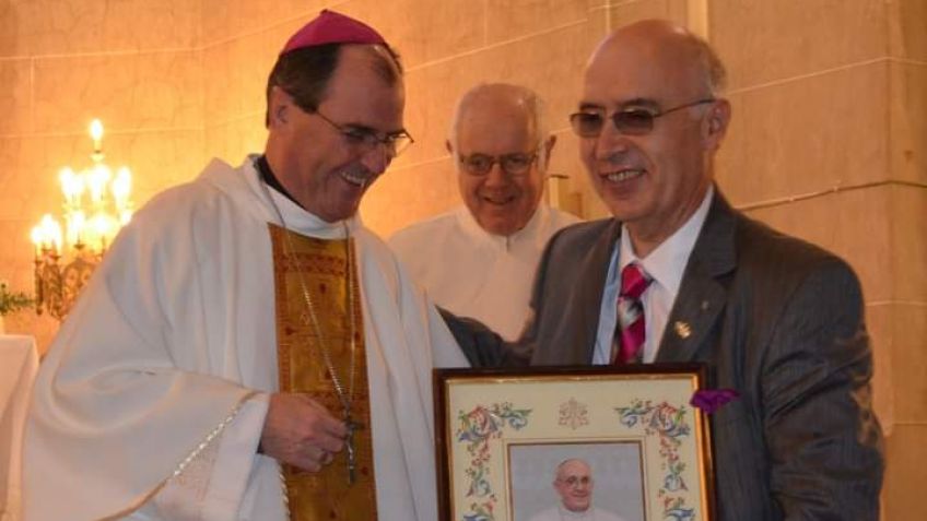 Nota: Foto me muestra junto al Obispo de Azul Monseñor Hugo Manu el Salaberry cuando en el año 2013 me entregó la Bendición Apostólica de Su Santidad el Papa Francisco al pueblo de Saladillo