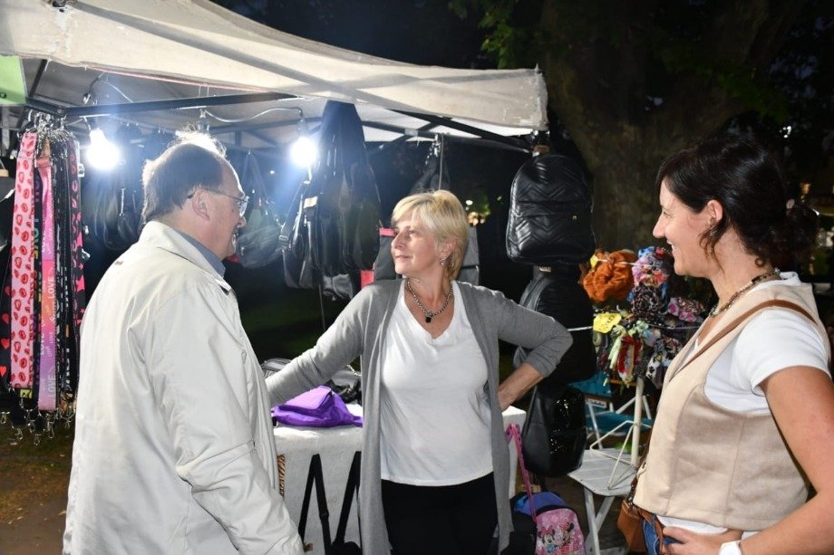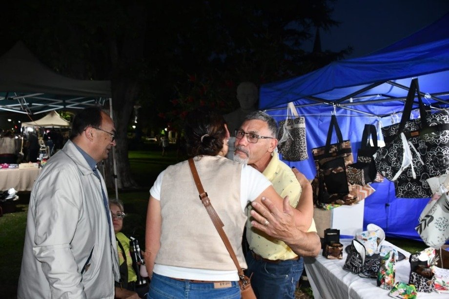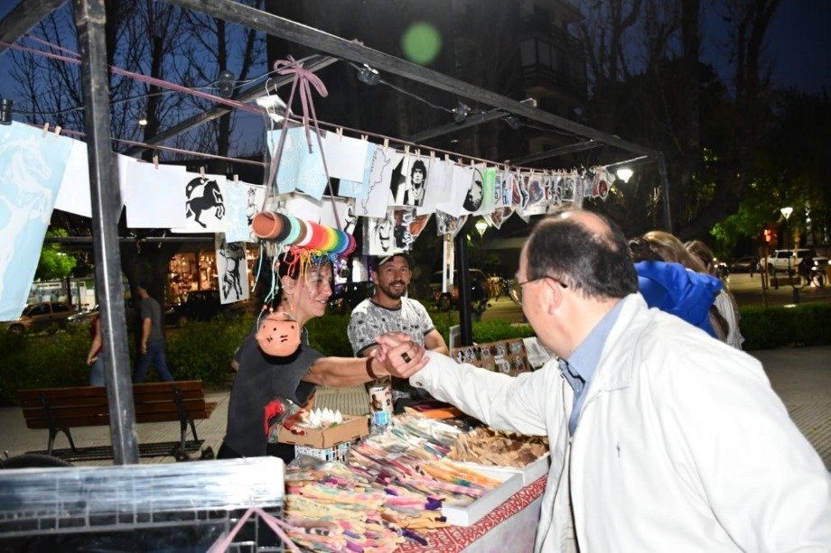 El Intendente Salomón junto con la Subsecretaria de Desarrollo Local Victoria Irañeta recorrió los diferentes stands que se encontraban en la Plaza Principal en el marco de una nueva edición de la Feria de Emprendedores locales.