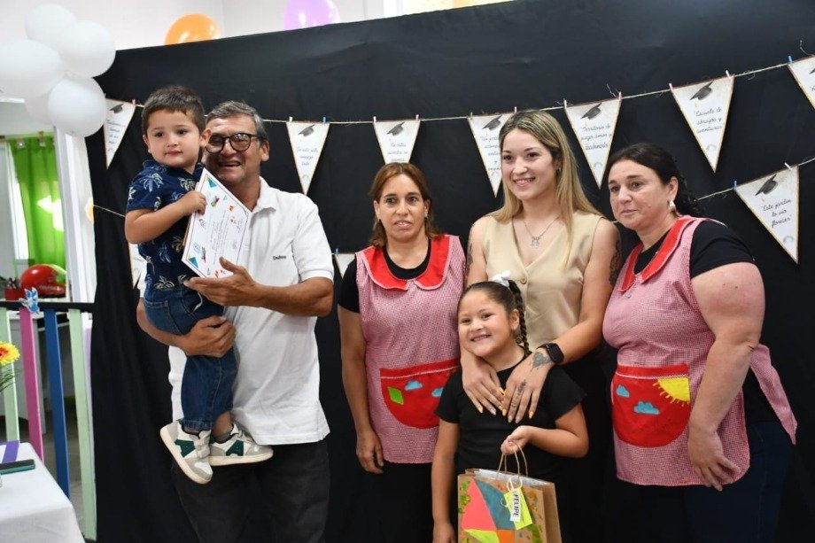 Tuvo lugar el acto de finalización del ciclo 2025 del Jardín Maternal Julito con la participación de familiares, el equipo docente, el Intendente Municipal Ing. José Luis Salomón, la Directora de Educación, CAI y Jardines Maternales Sandra Trabattoni y la Inspectora de Inicial Josefina Caponi.