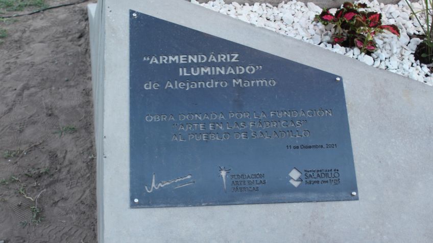 Fue realizada por el reconocido artista Alejandro Marmo y es el rostro del ex gobernador de la Provincia, Alejandro "Titán" Armendáriz. La escultura realizada en hierro y fue descubierta en un acto celebrado ayer a la noche con la presencia de autoridades municipales, provinciales, el ex vicegobernador de la provincia Daniel Salvador, familiares del ex gobernador, concejales de ambas bancadas, consejeros escolares, representantes de instituciones locales, el intendente de General Alvear Ramón Capra, el senador provincial Alejandro Celillo, y público en general.