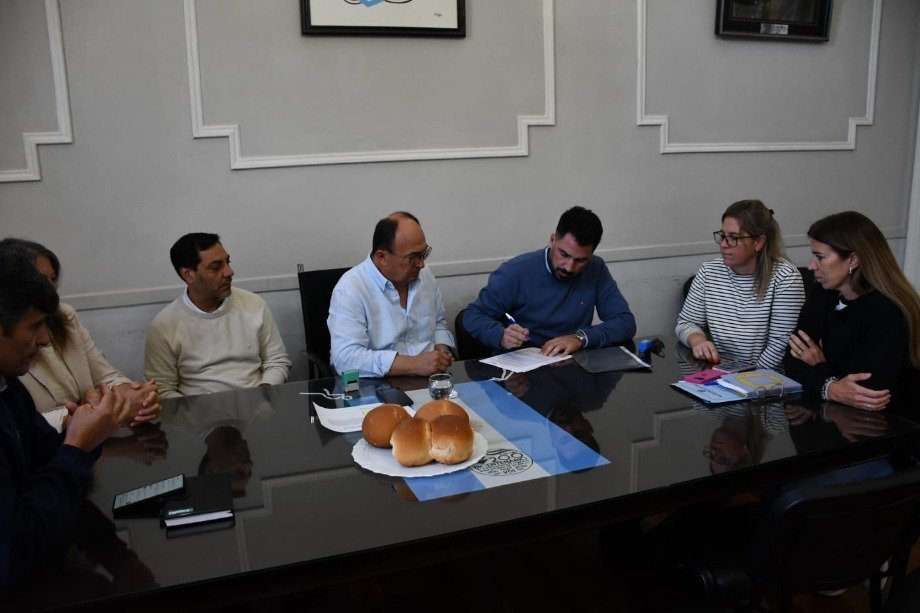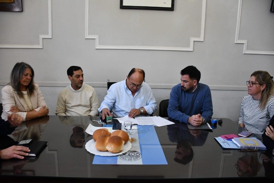 Durante la reunión se llevó a cabo la firma de un comodato de cesión de tierras para la instalación de un cajero automático del Banco Provincia en el espacio lindero a la Casa de la Provincia, ubicado en la intersección de las calles Alem y 12 de Octubre.