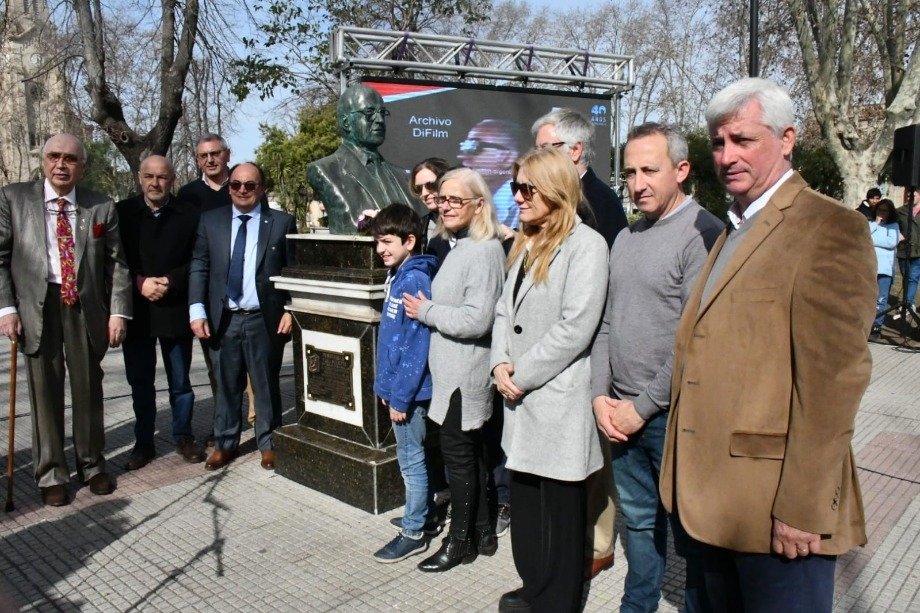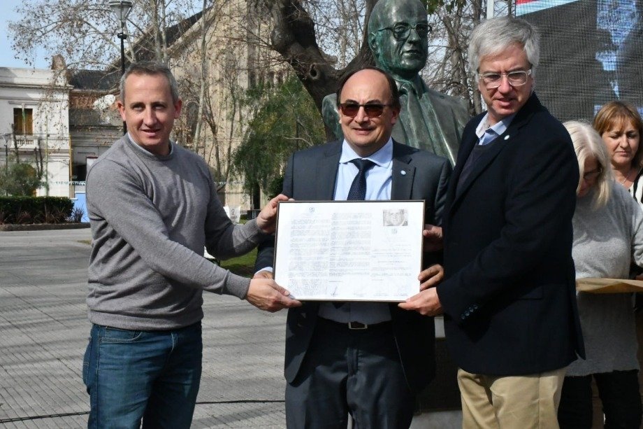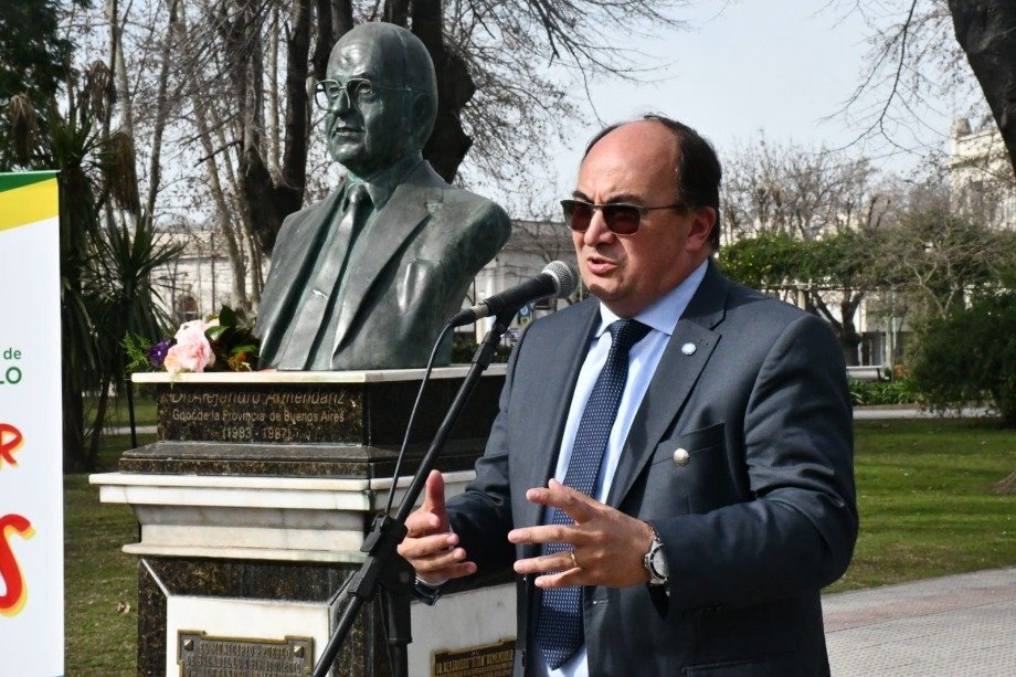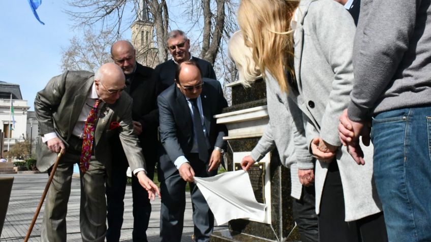 Luego del descubrimiento de una placa recordatoria en las instalaciones de la Escuela 1 Domingo Faustino Sarmiento, se llevó a cabo el mencionado acto frente al busto que lo recuerda en la plaza principal de nuestra ciudad sobre la Avenida Rivadavia.