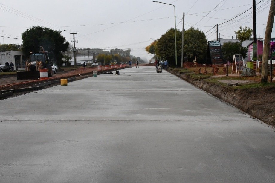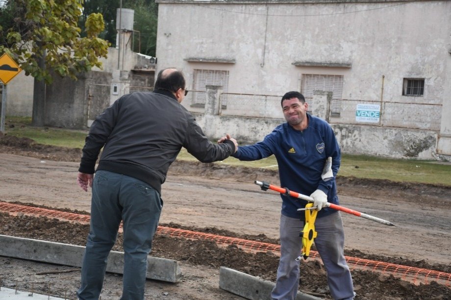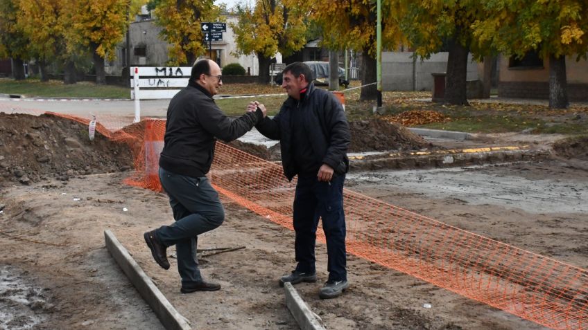 El Intendente Salomón junto con el Secretario de Obras Públicas Ing Guillermo Candia recorrió la obra de construcción del pavimento en dos cuadras de la Avenida Frocham, entre Toledo e Yrigoyen.