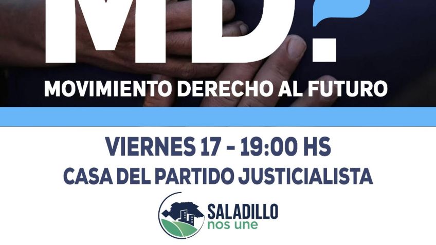Este viernes 17 de abril, a las 19:00, nos volvemos a encontrar en el Partido Justicialista de Saladillo para seguir avanzando en algo que nos convoca y nos une: "Pensar y construir el proyecto de desarrollo que queremos para Saladillo"
