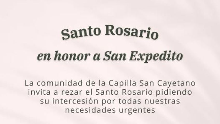 La comunidad de la Capilla San Cayetano te invita a compartir un momento de fe y oración, rezando el Santo Rosario y pidiendo la intercesión de San Expedito por todas nuestras necesidades urgentes.