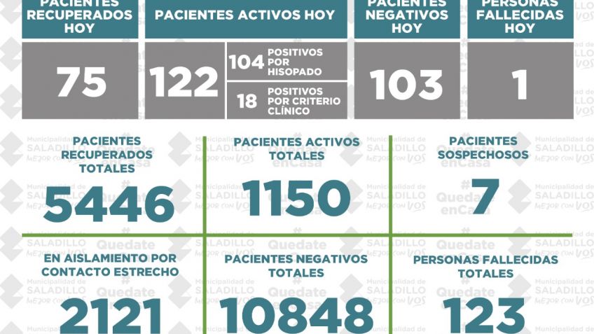 SITUACIÓN EPIDEMIOLÓGICA EN SALADILLO | 9/1/2022