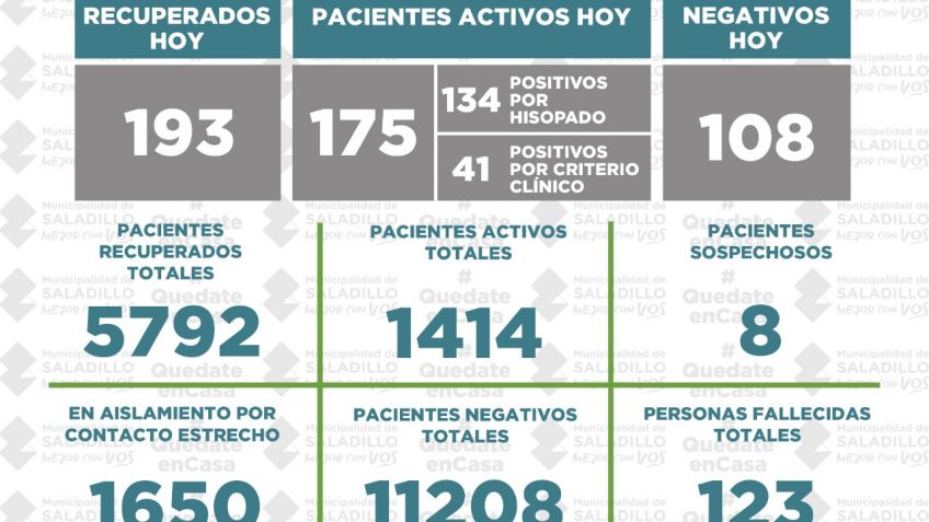 ? 175 pacientes positivos (134 por hisopado y 41 por criterio clínico).
