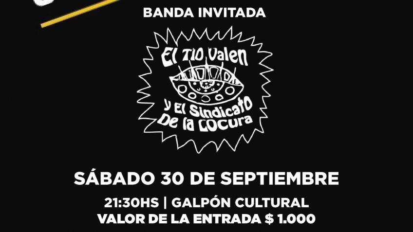 El 30 de septiembre a las 21:30 horas en el Galpón Cultural, en el marco del programa Impulso, ciclo de arte itinerante se presentará la banda local Somonosotro con la participación de la banda invitada El tío Valen y el sindicato de la locura.