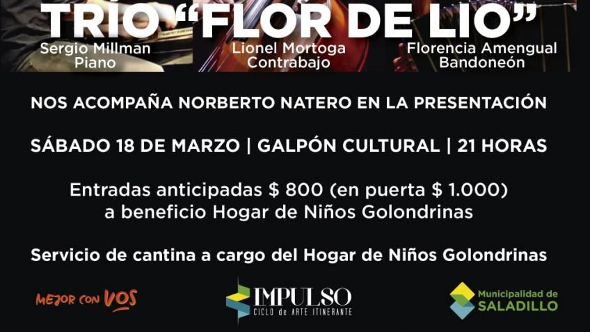 Entradas anticipadas $800, en puerta $1000 a beneficio del Hogar de Niños Golondrinas.