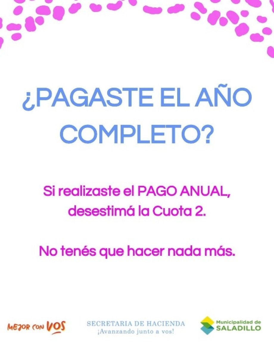 RECORDÁ: Si ya realizaste el Pago Anual, desestimá la Cuota 2. Ya que fue liquidada antes del vencimiento de la cuota 1, con lo cual puede haber pagos no ingresados aún.