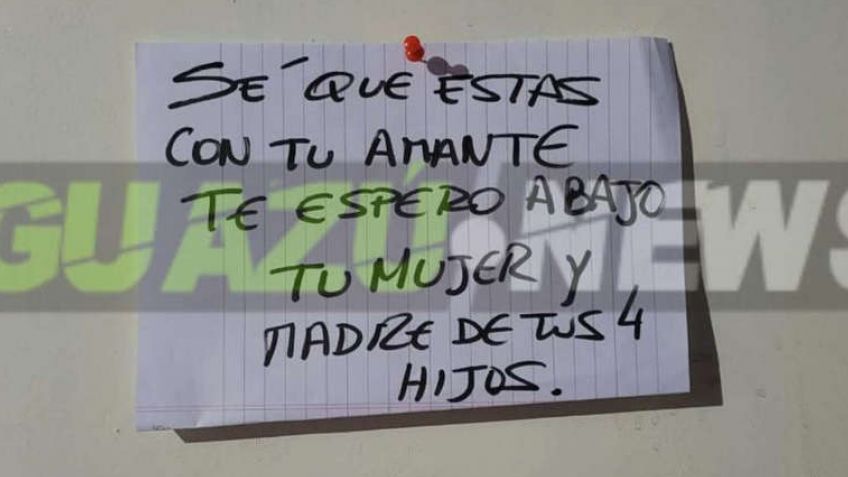 "Sé que estás con tu amante, te espero abajo, tu mujer y madre de tus 4 hijos", fue el mensaje que la mujer escribió en una hoja de papel que pegó en la puerta de la habitación donde su entonces esposo se encontraba "divirtiéndose" con su amante.