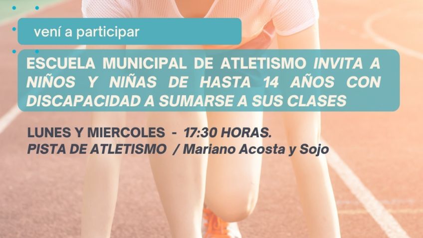 Desde la Subsecretaría de Deportes y Recreación y la Subsecretaría de Desarrollo Humano queremos invitar a niños, niñas y jóvenes hasta 14 años con discapacidad, a sumarse al grupo de nuestra Escuela Municipal de Atletismo.
