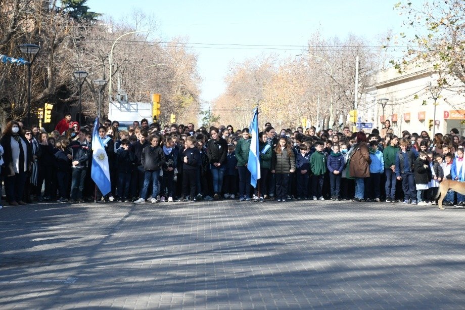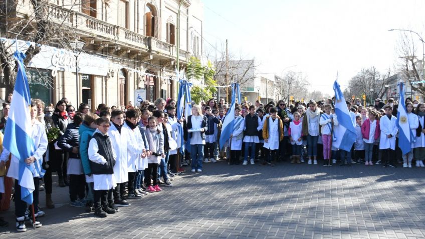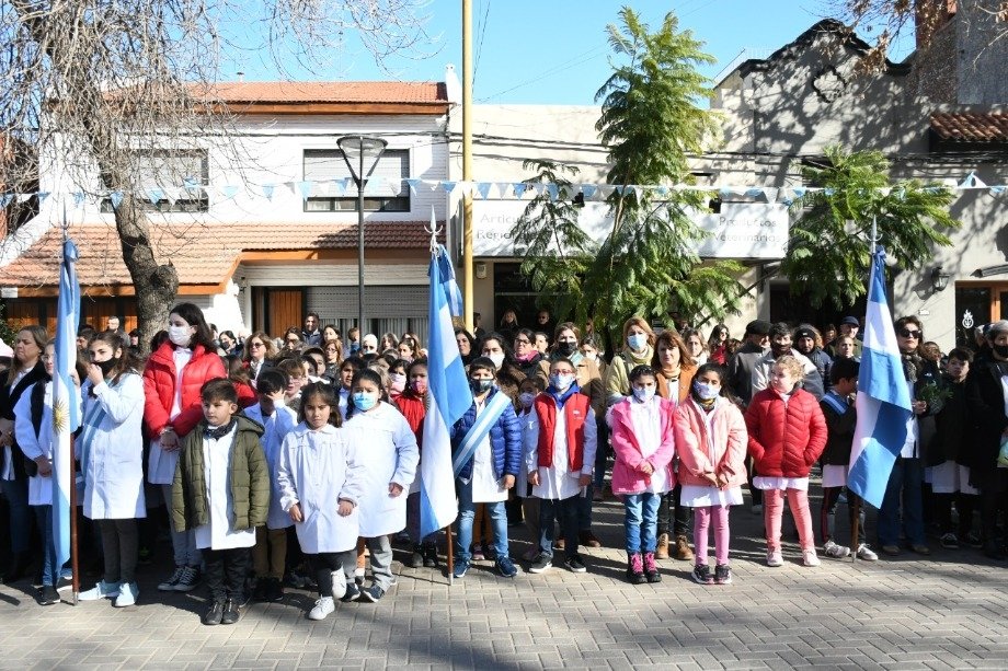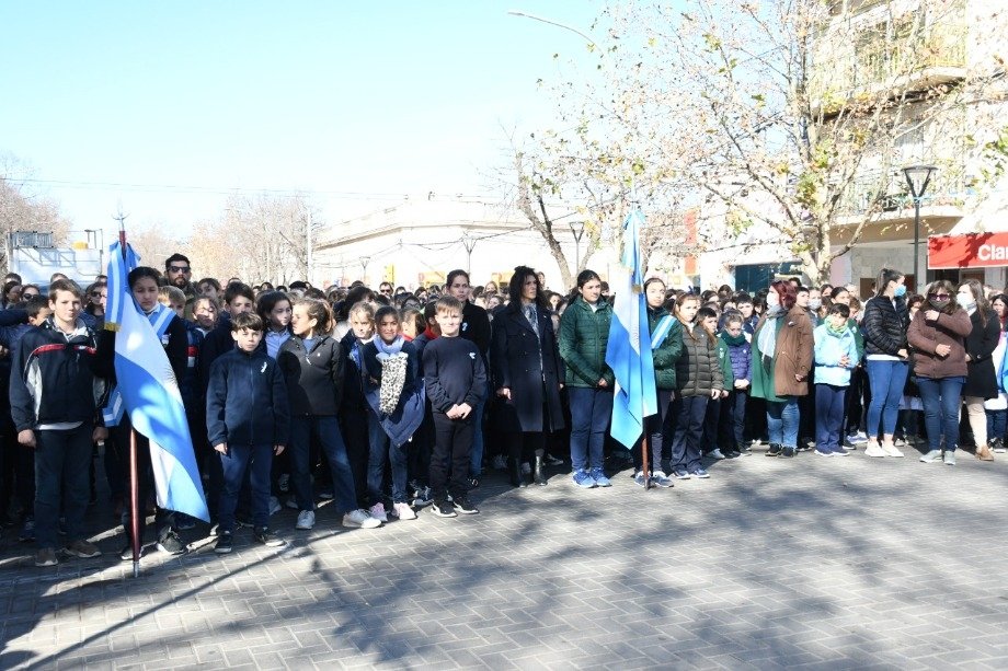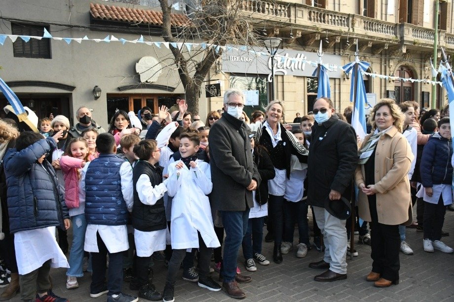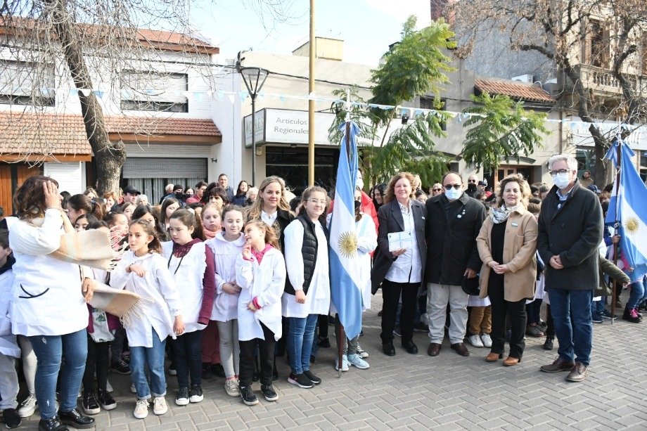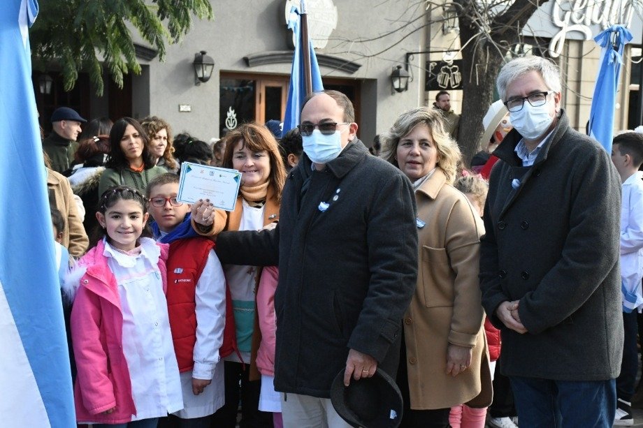 Durante la tarde de ayer en la Avenida Belgrano frente al busto del creador de nuestra enseña patria, se desarrolló el acto de toma de juramento para los alumnos de 4to, 5to y 6to año de las escuelas primarias de nuestra ciudad. El mismo se inició con las estrofas del Himno Nacional, interpretado por Agustina Velasco, luego se realizó una ofrenda de ramos de laureles, y posteriormente hubo palabras de una madre, Milagros Huerta, y de docentes como Gabriela Rubino del Instituto Niño Jesús, Lorena Cotignola de la Escuela N° 9 y la Inspectora Jefe Distrital Fernanda Catullo quien realizó la toma de juramento a todos los alumnos presentes. Posteriomente actuó la murga de la bandera de los alumnos de la escuela N° 14 de Álvarez de Toledo y finalmente las autoridades municipales encabezadas por el Intendente Salomón, realizó la entrega de los certificados correspondientes. Este acto concluyó con un chocolate caliente frente al municipio local.