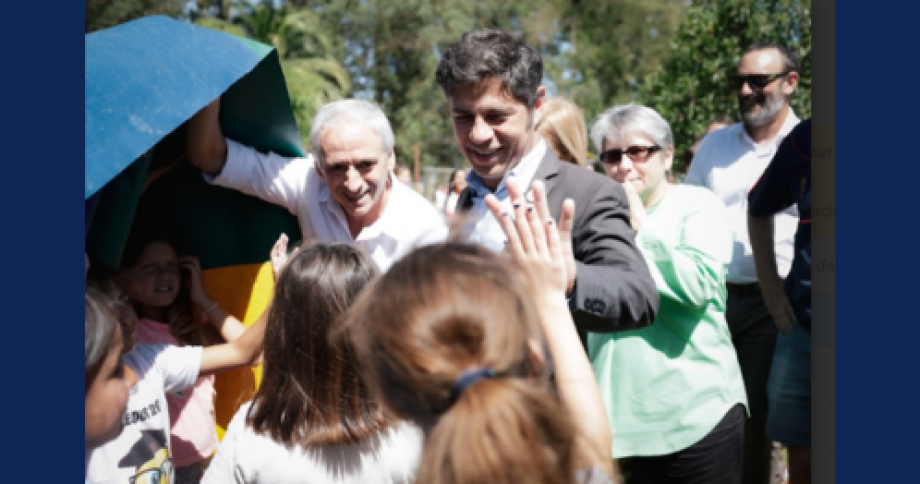 Durante la jornada, Kicillof y la directora general de Cultura y Educación, Flavia Terigi, recorrieron el parque acuático Puerto Aventura, donde niñas y niños de diferentes escuelas locales participan de actividades recreativas en el marco del programa Escuelas Abiertas en Verano.