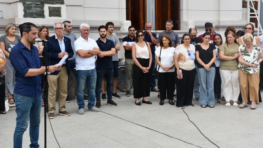 Luego del servicio religioso realizado en la Iglesia Nuestra Señora de la Asuncion, frente al Municipio se llevó a cabo la lectura del Decreto de Honores correspondiete y hubo palabras de despedida por el fallecimiento de Mario Simoy, quien se desempeñara como Concejal por el Partido Justicialista de Saladillo.