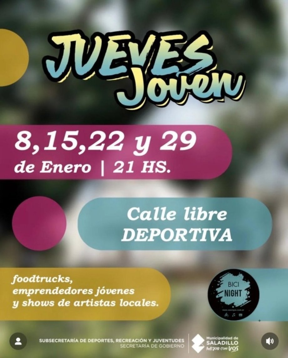 * JUEVES JOVEN - Calle libre deportiva, Bici night, shows y emprendedores jóvenes