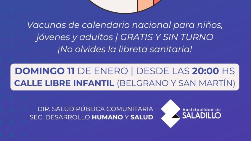 En el marco de la Calle Libre Infantil, un espacio pensado para el juego, el encuentro y las propuestas lúdicas, la Dirección de Salud Pública Comunitaria invita a participar de "La Noche de las Vacunas".