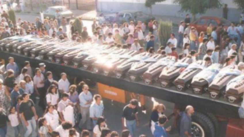 El velatorio se realizó en un salón municipal. Los féretros, alineados y cubiertos con cascos, flores y cartas, recibieron el saludo de miles de personas. Afuera, la fila avanzaba lentamente bajo un silencio sobrecogedor.