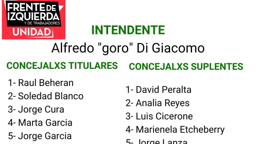 La lista de unidad del FITU en Saladillo, se compone de la siguiente manera: