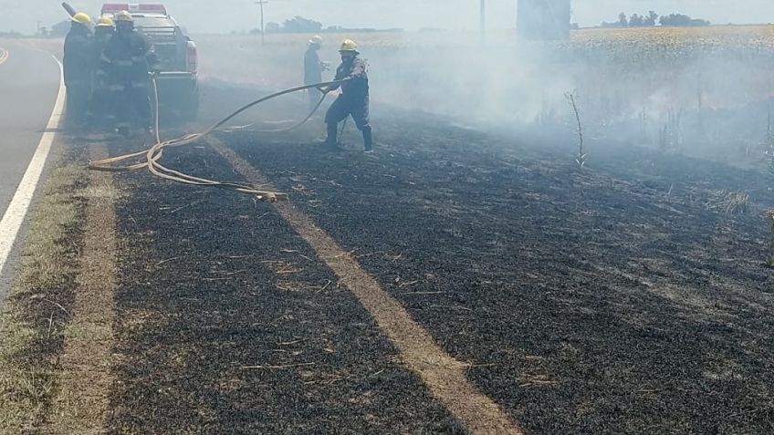 A las 12:00 se produjo un llamado a los bomberos de nuestra ciudad por incendio de pastos sobre la ruta provincial 51, en cercanías del arroyo Las Flores