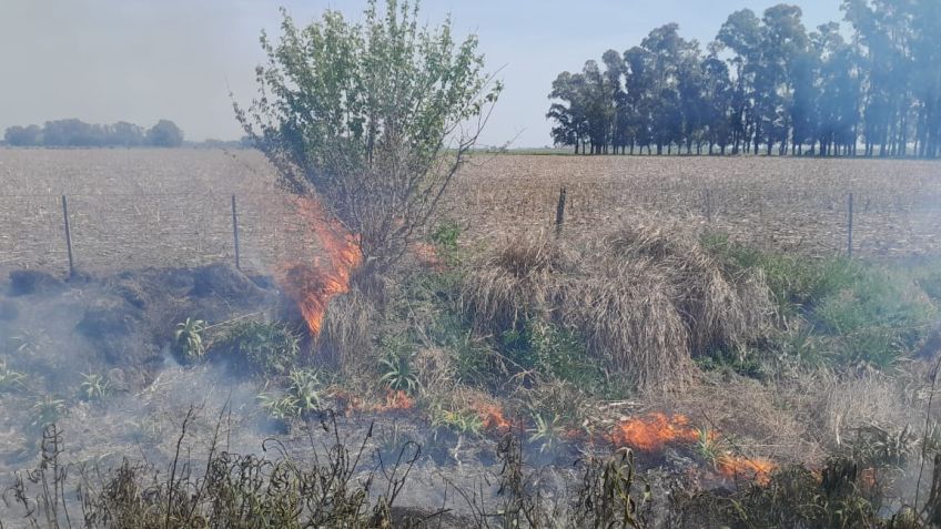 A las 18:05 fueron convocados los Bomberos de nuestra ciudad por un incendio de rollos y pasto en el acceso a la localidad de Cazón.