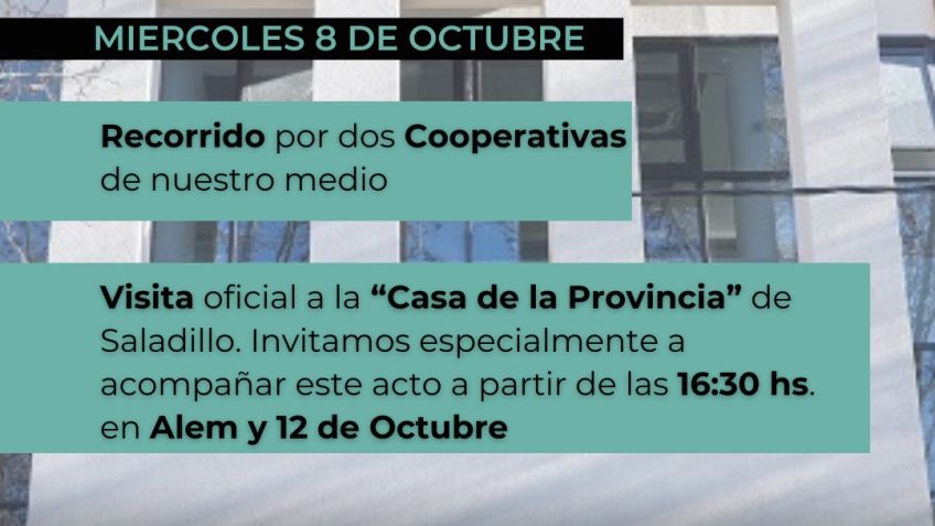 Realizará una recorrida por dos Cooperativas de nuestro medio; en primer lugar visitará la Planta de Silos de la Cooperativa Agrícola, y más tarde la sede del Molino Harinero de nuestra ciudad.