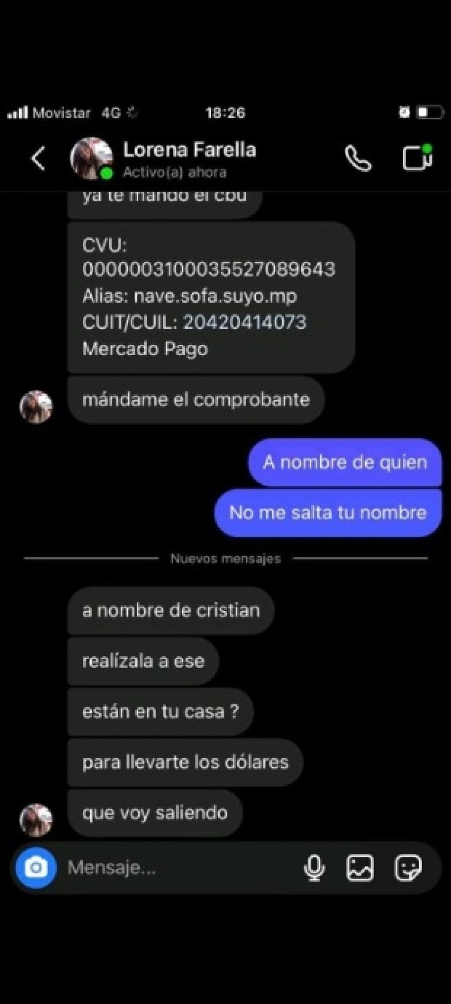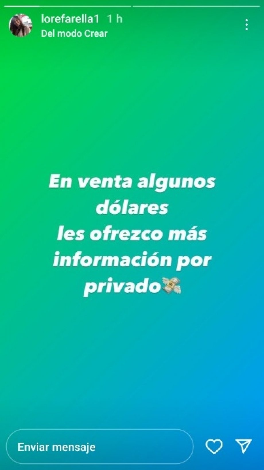 "¡Hola a todos! Me hackearon la cuenta de INSTAGRAM. No vendo ni teléfono ni dólares. Ya lo denuncié pero, por favor, es todo FALSO", es el mensaje de Lorena Farella en sus redes.